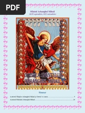 Sfinte arhanghel mihail, conducătorul oştirilor cereşti, tu care eşti ales să învingi forțele răului, tu, în faţa căruia orice. Potrivit tradiției populare, sfinții arhangheli mihail şi gavriil sunt conducătorii cetelor de îngeri şi călăuze ale sufletelor în drumul spre rai.